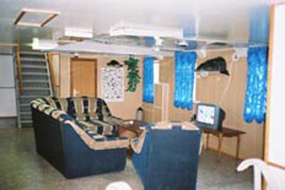 на 3-х ярусной плавучей базе (дебаркадер).