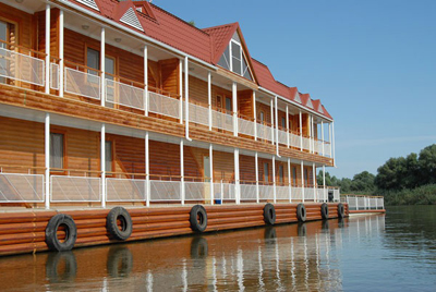 Двухэтажный дебаркадер, с нулевым этажом, Специализированная гостиница для рыбаков, охотников, подводных охотников и фотоохотников. Апартаменты и Номера Люкс на 2-м этаже, Ресторан-Бар с Развлекательным центром, VIP-кабинет на 8 человек на 1-м этаже. Номера Полу-люкс, Сауна с бассейном, комната отдыха, сушка для одежды, прачечная, комнаты для персонала на 0-м этаже. Напряжение электросети 220V. Подача электроэнергии и воды круглосуточно. На кормовой площадке установлены шкафчики для удилищ и снастей, а так же морозильник для рыбы и дичи. Магазин рыболовных принадлежностей. Пункт продажи и проката всего необходимого снаряжения и оборудования для погружения. Полностью кондиционированный, телефонизированный, имеет автономную систему очистки сточных вод и автономную систему отопления.