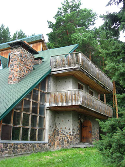 - трехэтажный гостевой дом с каминным залом, большим бильярдом, расположенный на берегу живописного пруда площадью 7,5 га. Одновременно в доме могут разместиться 28 человек;